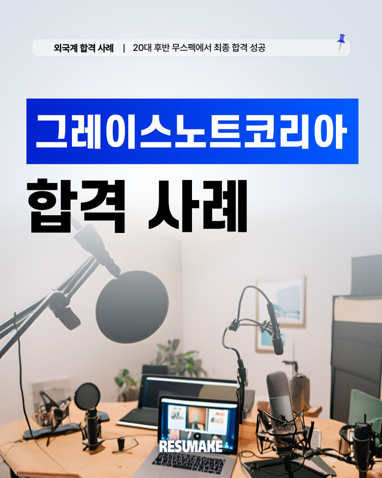 오늘은 그레이스노트코리아 최종합격 사례를 소개하도록 하겠습니다. 사례의 주인공은 어문학과 졸업생으로 이력서를 제출해도 서류 탈락이 반복되고 심지어 국내 중소기업에서도 면접 기회를 얻지 못하고 있었는데요.