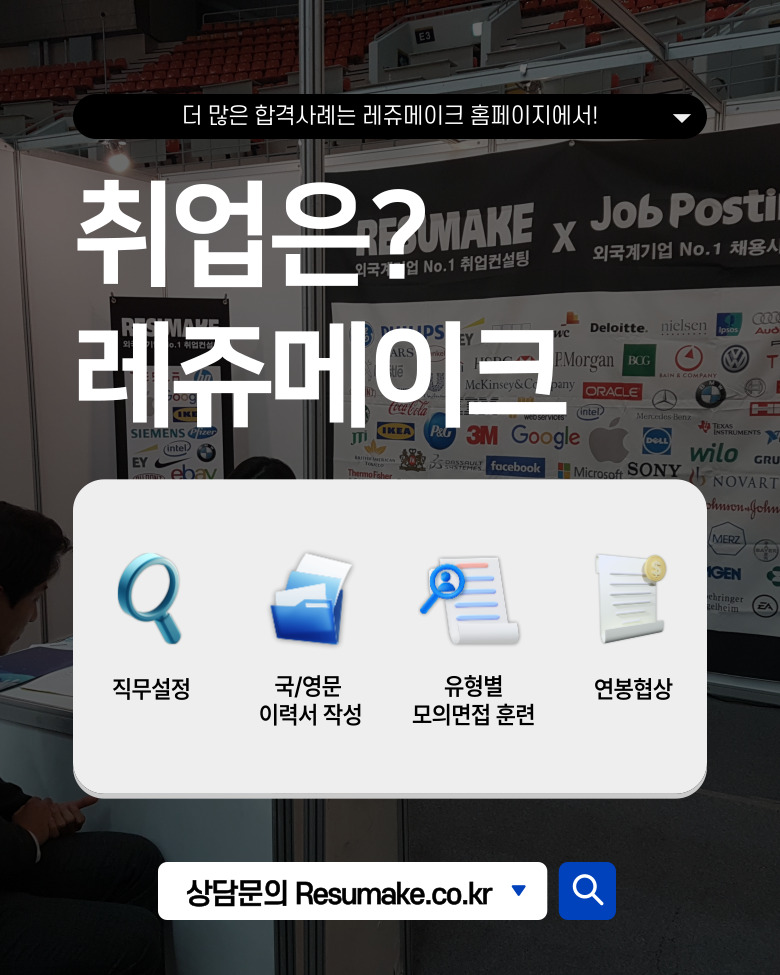 레쥬메이크와 함께라면 여러분도 원하는 외국계 기업에 입사할 수 있습니다.