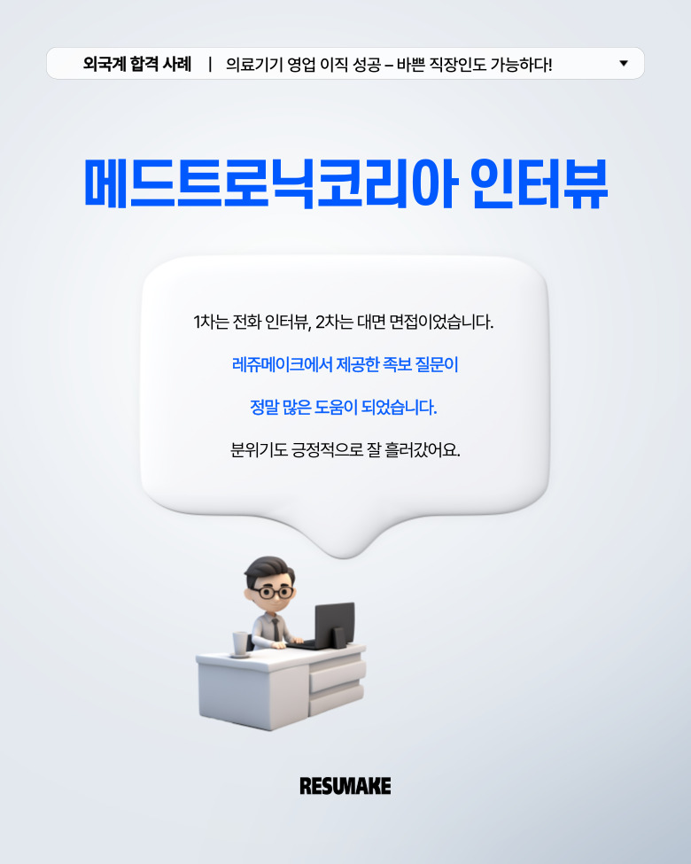 퇴근 후, 주말을 활용한 레쥬메이크 컨설팅을 통해 외국계 헬스케어 회사에서 면접을 제안받고 성공적인 결과를 거둔 과정을 소개합니다.