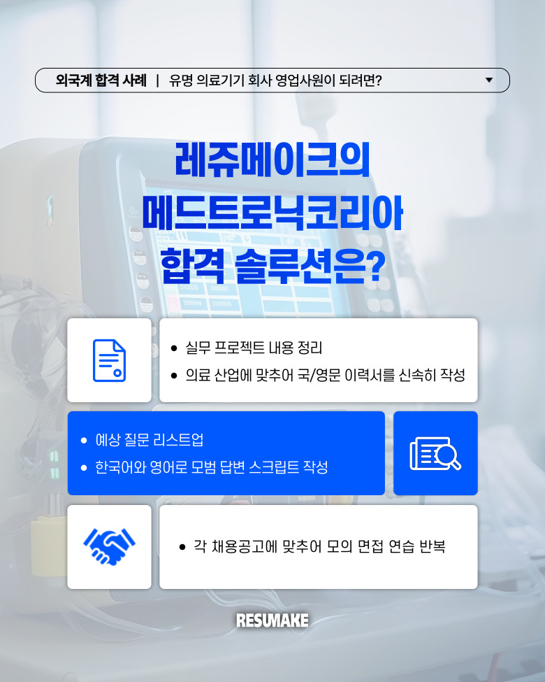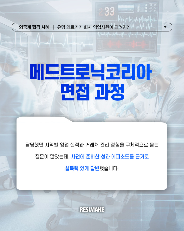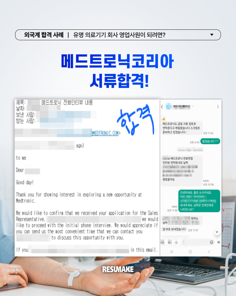 오늘 소개할 합격 사례는 글로벌 의료기기 회사인 메드트로닉코리아와 다수의 외국계 기업으로부터 영업 직무 면접 제안을 받은 지원자의 이야기입니다.