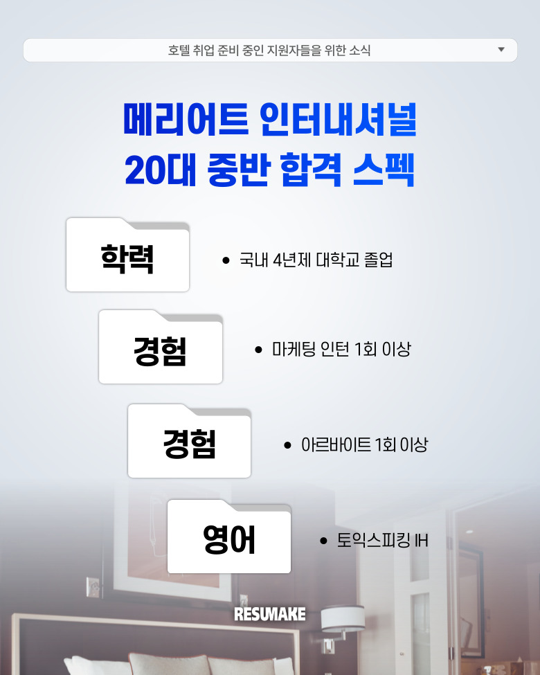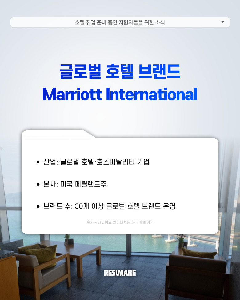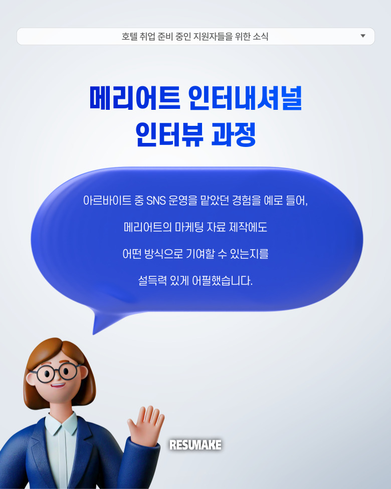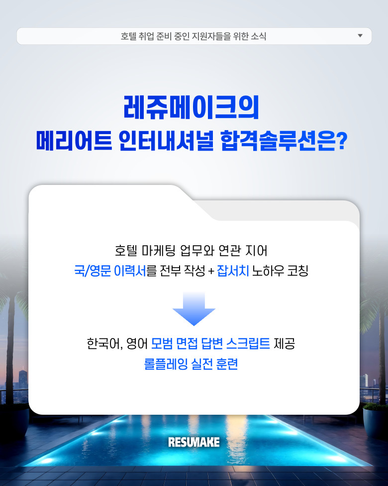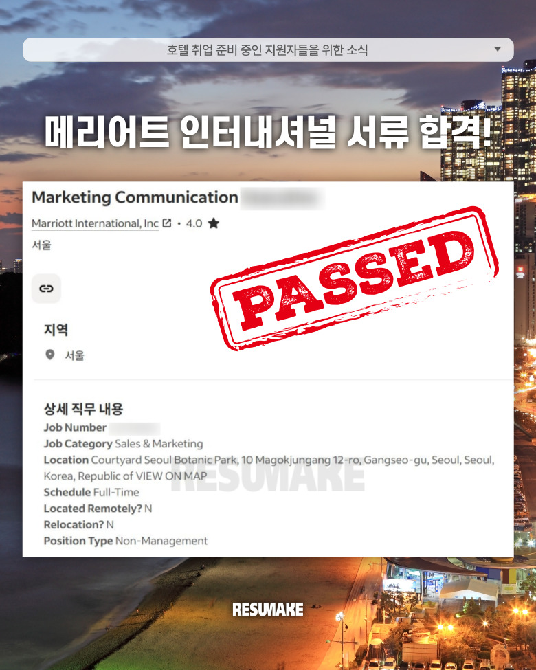 레쥬메이크와 함께 다시 처음부터 취업을 준비하면서 메리어트 인터내셔널 마케팅 커뮤니케이션 직무에 최종합격하게 된 과정을 소개하도록 하겠습니다.