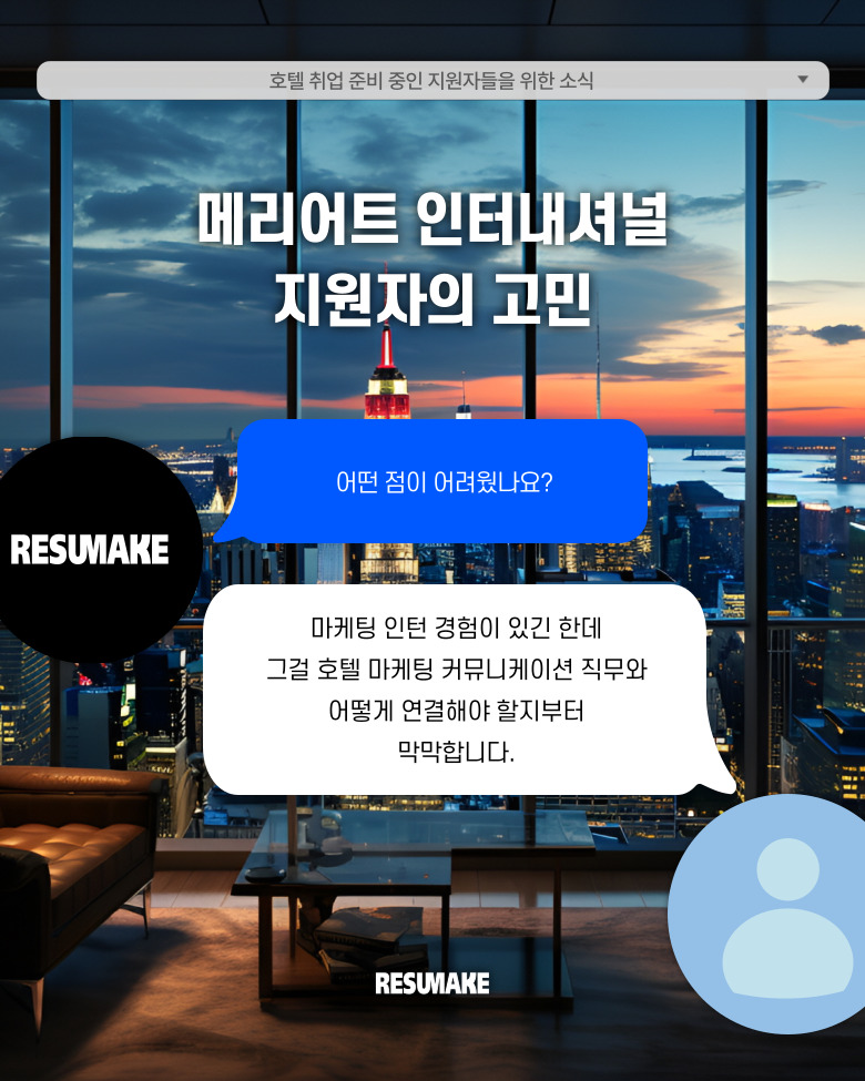지원자는 마케팅 인턴 경험이 있긴 했지만, 그걸 호텔 마케팅 커뮤니케이션 직무와 어떻게 연결해야 할지부터 막막했다고 말했습니다.