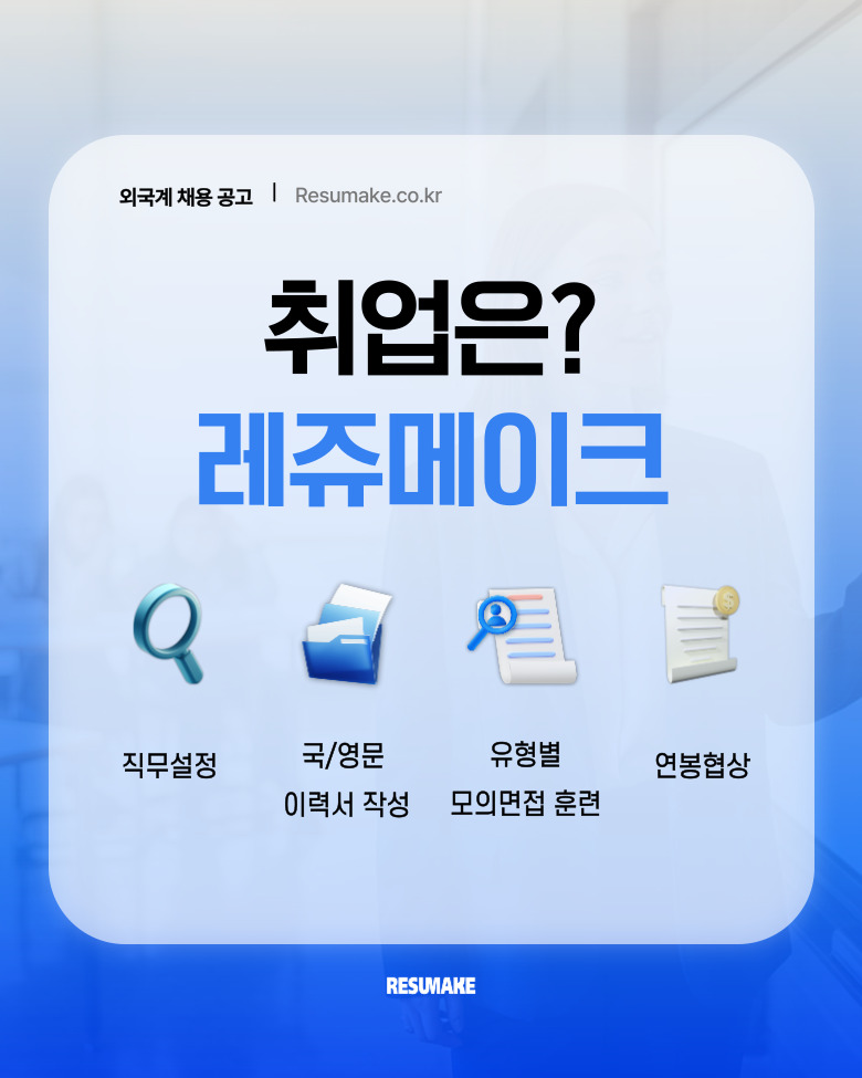 레쥬메이크에서는 수많은 유명 외국계 기업 합격자를 배출한 채용전문가가 당신의 가능성을 최대한 끌어올려드립니다.