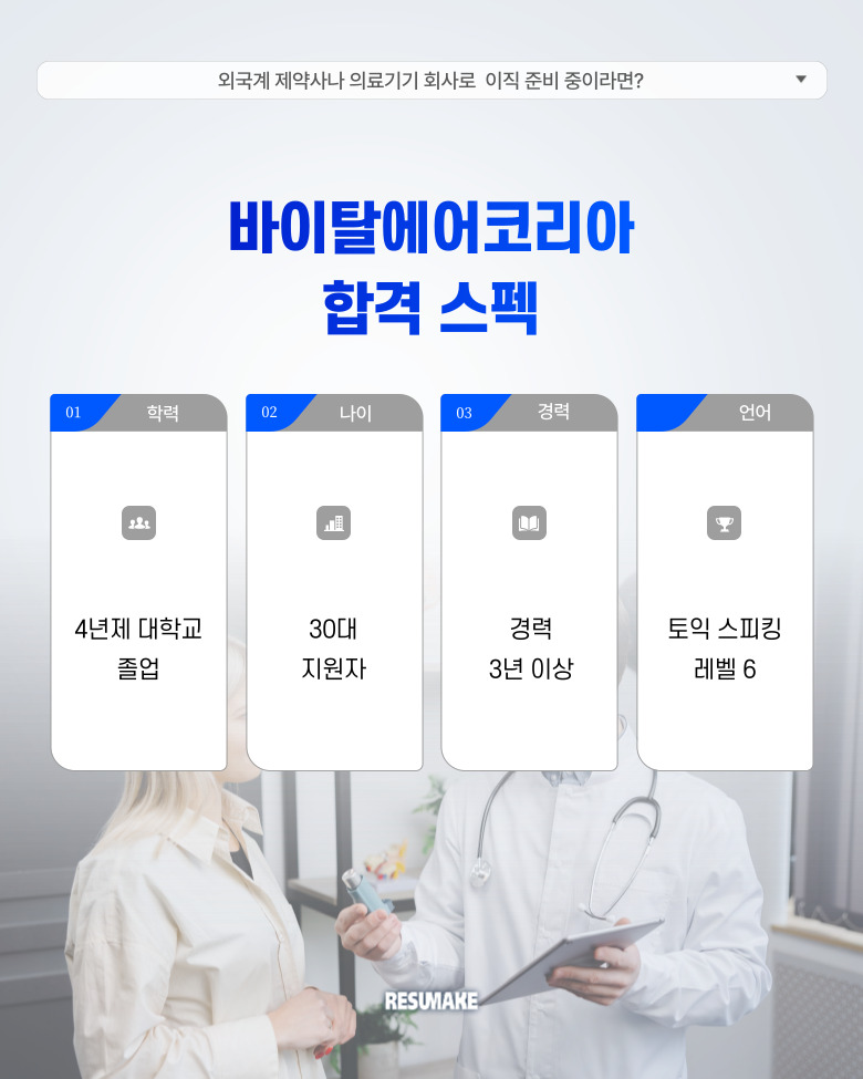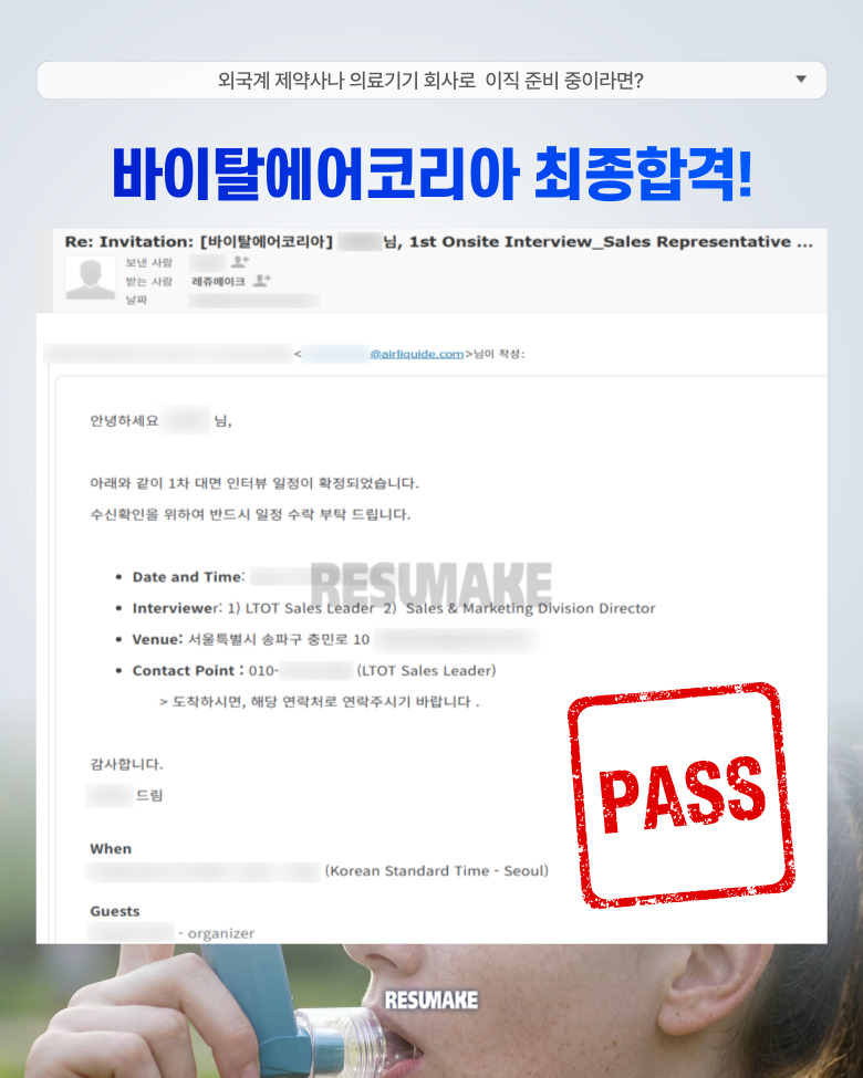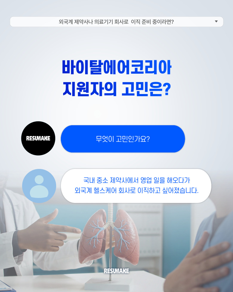 오늘 소개할 사례는 국내 중소 제약사 영업 경력에서 출발해 바이탈에어코리아 Sales Representative 포지션에 최종 합격한 30대 지원자의 이야기입니다.