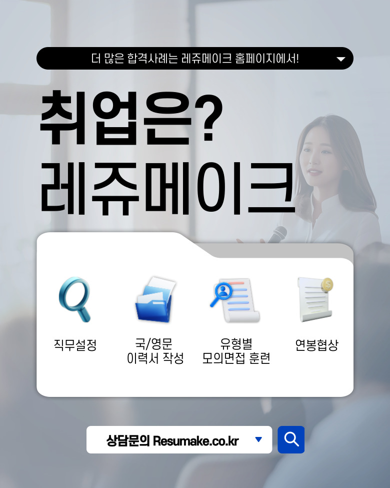 이렇듯 혼자 취업을 준비하기 부담된다면, 레쥬메이크에서 전문적인 도움을 받아보세요.