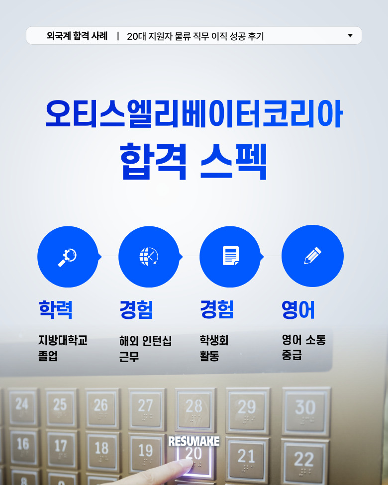 오늘 소개할 사례는 “지방대 출신 꼬리표”로 고민이 컸던 한 지원자가 글로벌 승강기 기업 오티스엘리베이터코리아 재무회계 직무에 당당히 서류합격한 이야기입니다.