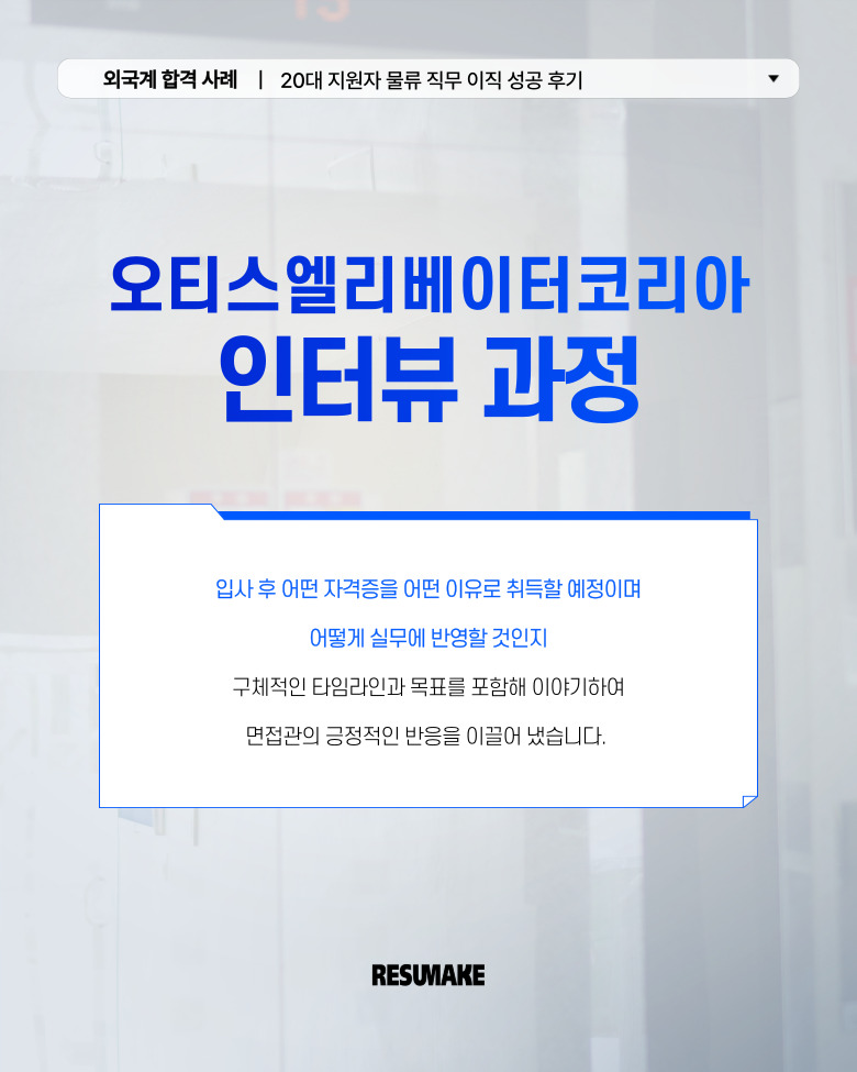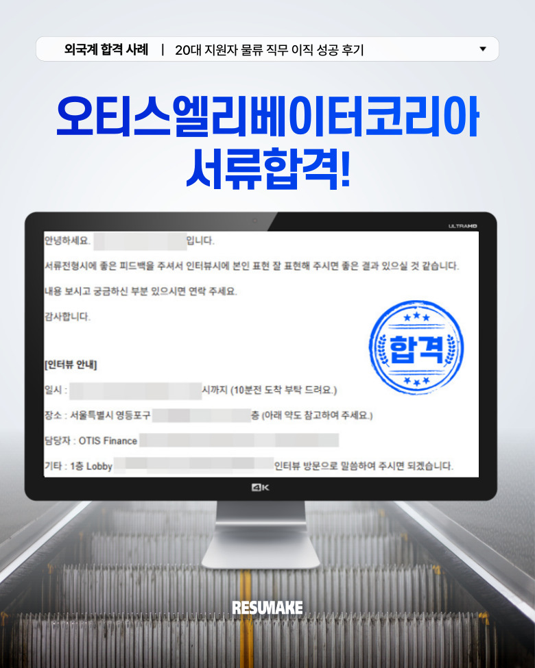 지원자는 오티스엘리베이터 외에도 여러 외국계 기업에서 면접 제안을 받았고, “자신을 거들떠도 안 볼 것이라 생각했던 유명한 기업에서 연락이 오는구나”라며 자신감을 되찾게 되었습니다.