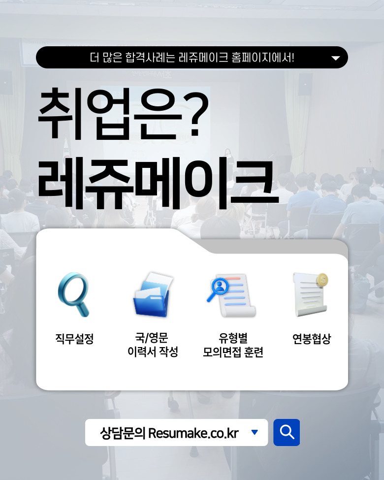커리어의 첫 단추, 고민하지 말고 레쥬메이크 하세요.