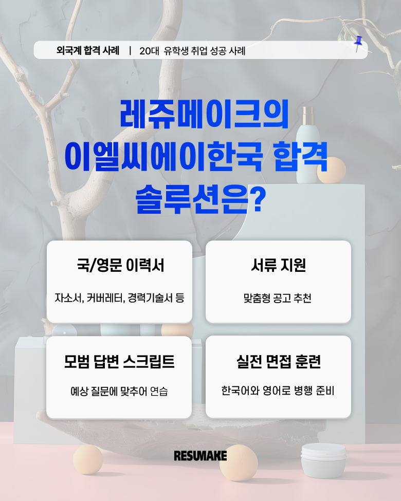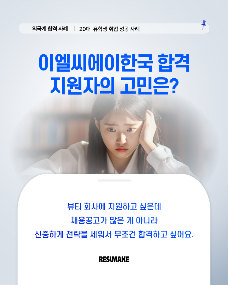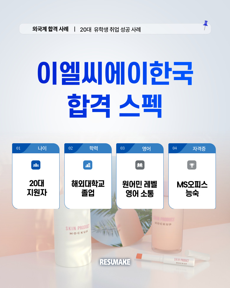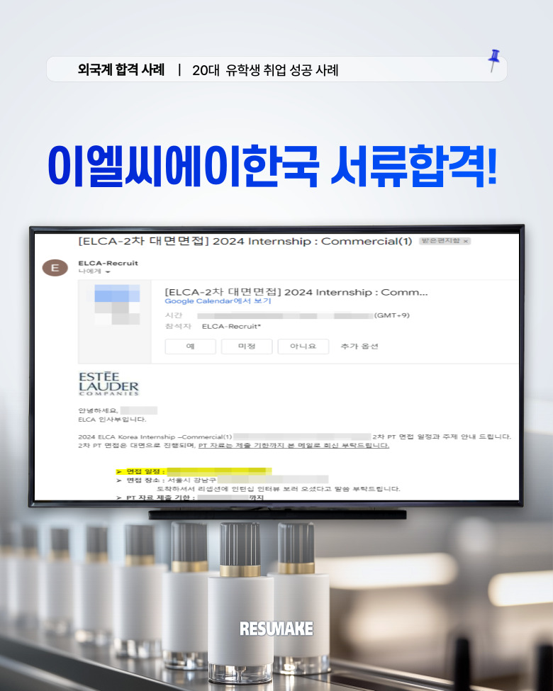 오늘 소개할 사례는 이엘씨에이한국 인턴십 포지션에 서류합격한 지원자입니다.