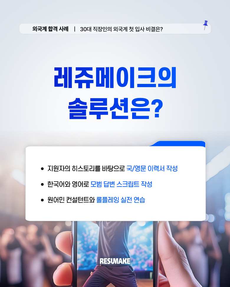 이번 사례의 지원자는 해외대학교 졸업 후 다양한 산업에서 5년 이상 경력을 쌓은 30대 중반의 지원자였습니다.