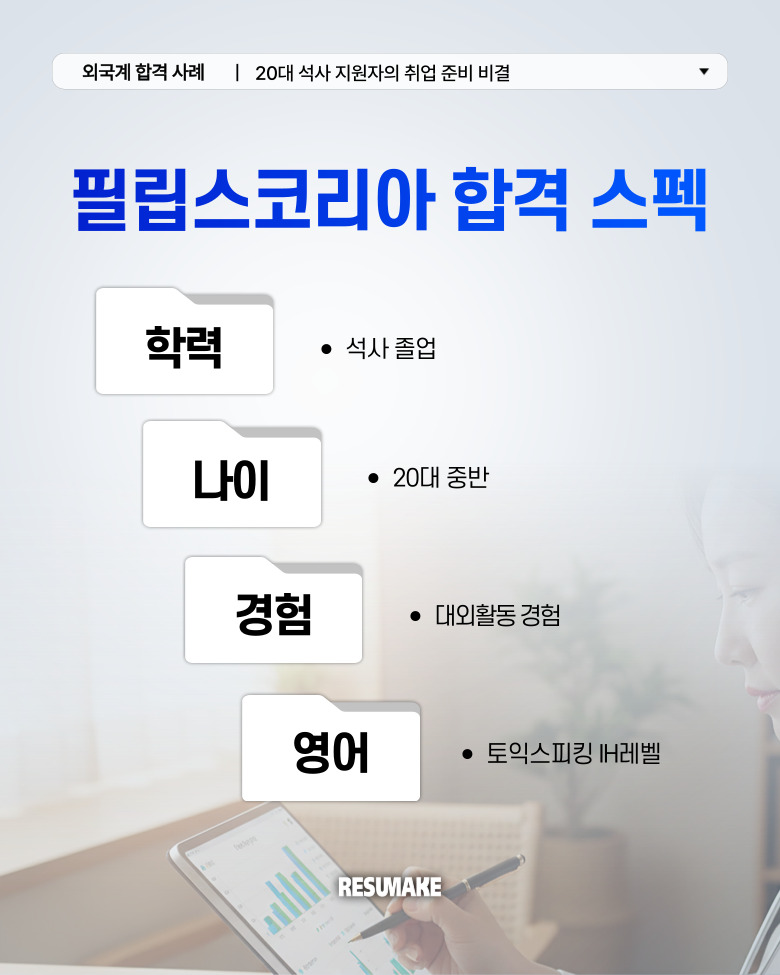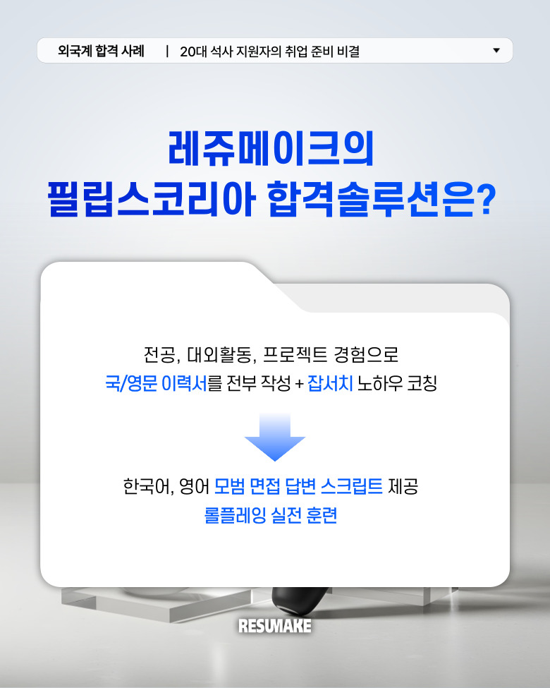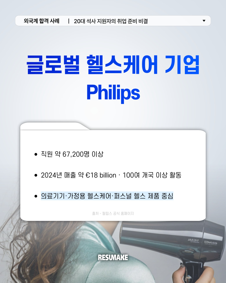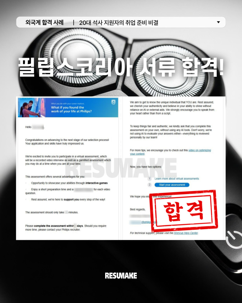 오늘은 외국계 헬스케어 기업 필립스코리아에 마케터로 지원한 20대 석사 케이스를 소개하겠습니다.
