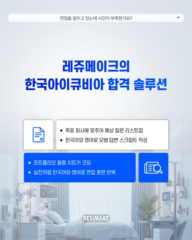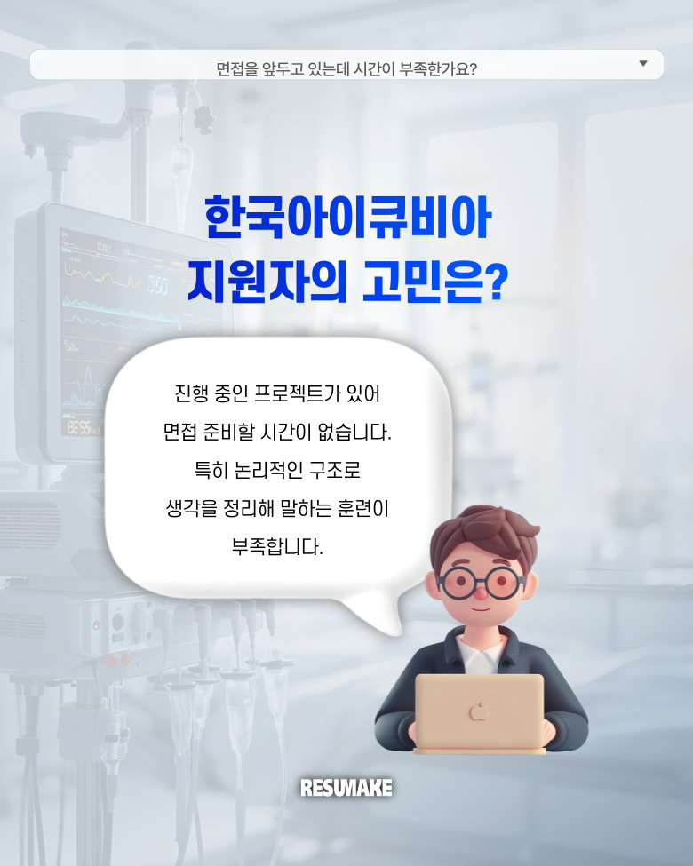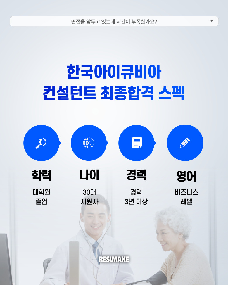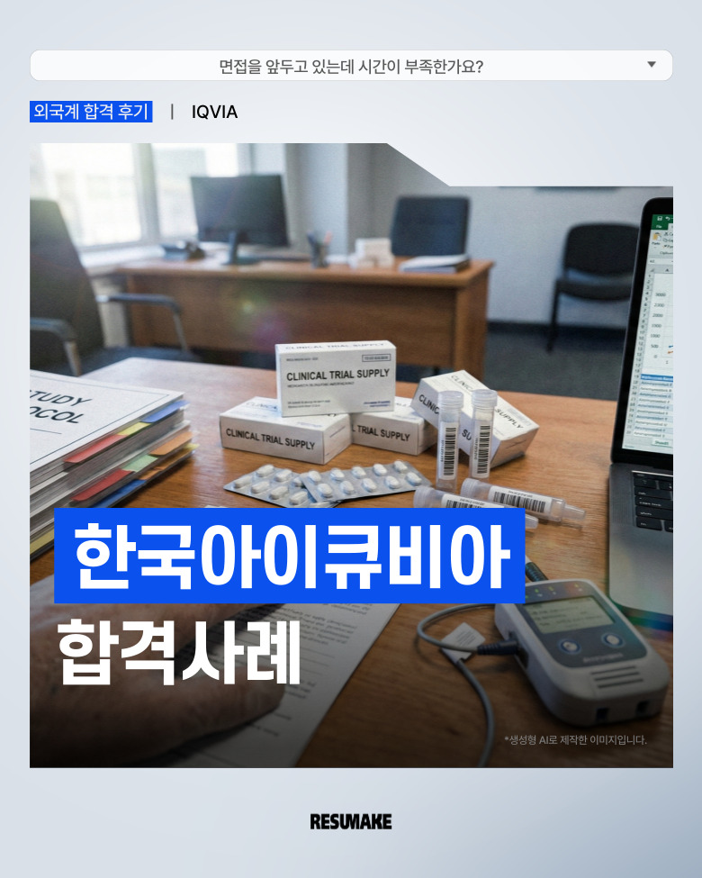 오늘 소개할 사례는 그런 상황에서 레쥬메이크에 긴급 면접 컨설팅을 요청해 짧은 시간 안에 준비를 끝낸 뒤 한국아이큐비아 컨설턴트 직무에 최종합격한 지원자의 이야기인데요.
