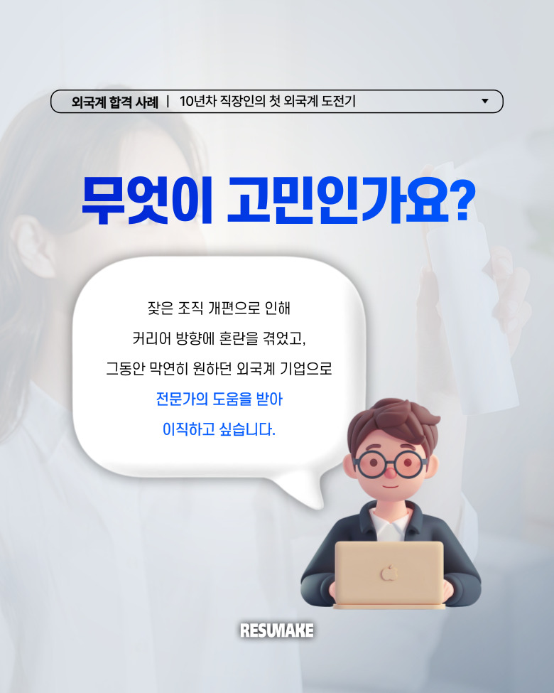 예전부터 생각만 해오던 외국계 이직을 이번엔 꼭 실행에 옮기고 싶다는 마음으로 결심하게 되었습니다.