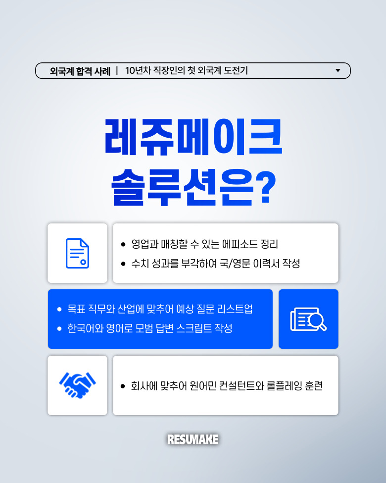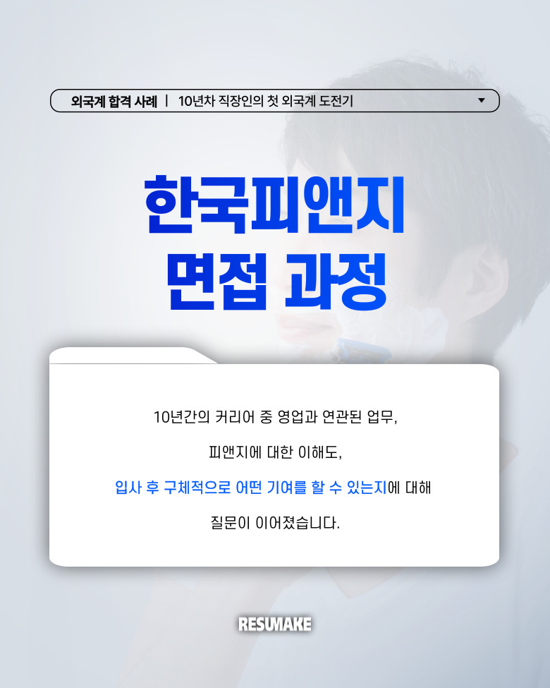 오늘 소개할 사례는, 10년 동안 국내 기업에서 일해오다 외국계로 커리어 전환을 결심한 30대 지원자의 이야기입니다.