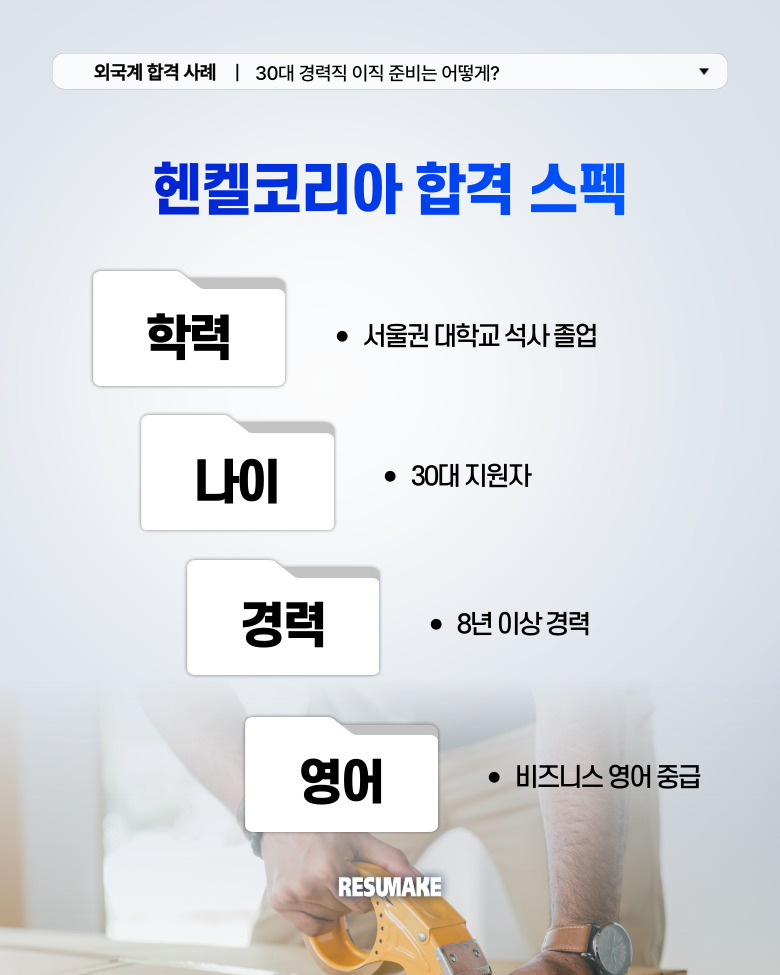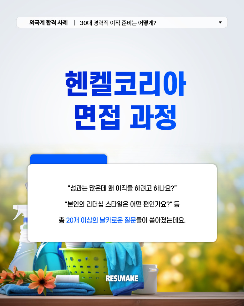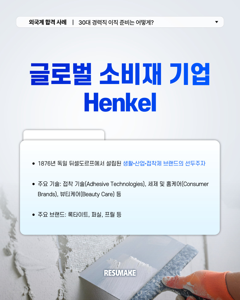 오늘 소개할 합격 사례는 글로벌 생활∙산업∙접착제 브랜드의 선두주자, 헨켈코리아 마케팅 포지션에 합격한 지원자의 이야기입니다.