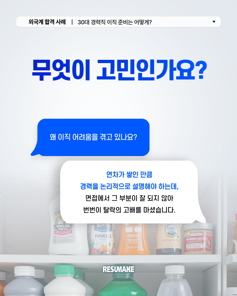 다만, 연차가 쌓인 만큼 경력을 논리적으로 정리해 설명하는 것이 더욱 중요한데, 면접에서는 그 부분이 잘 되지 않아 번번이 탈락의 고배를 마셨습니다.