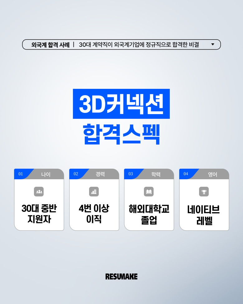 3D커넥션에서 인터뷰를 요청한 30대 중반 지원자의 스펙을 설명하도록 하겠습니다.