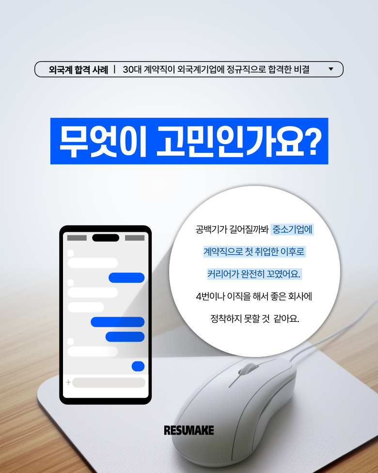 30대가 되기까지 계약직을 전전한 지원자는 더 이상 이렇게 커리어를 망칠 수 없다는 생각에,
