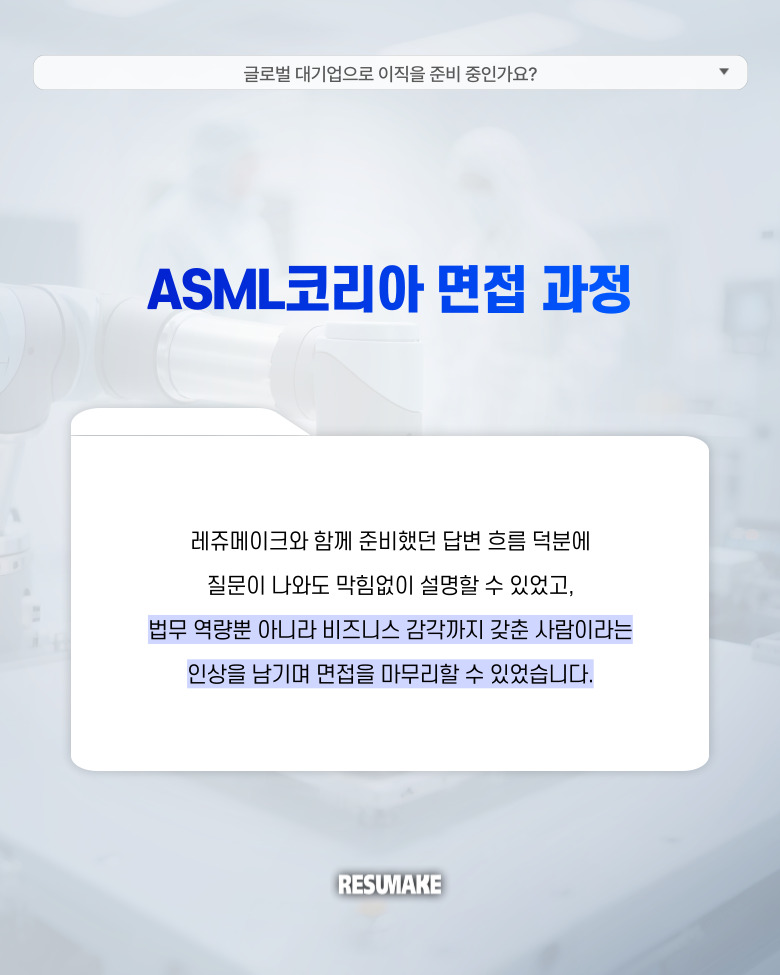 반도체 업계 최상위 기업인 ASML의 법무 포지션에 맞게 자신의 경력을 어떻게 풀어내야 할지 고민하고 있었는데요.