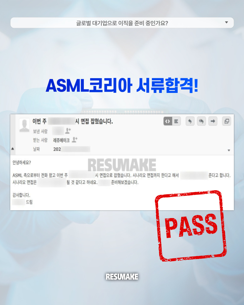 결국 레쥬메이크 컨설팅을 통해 ASML코리아 등에서 성공적으로 면접을 제안받게 되었습니다.