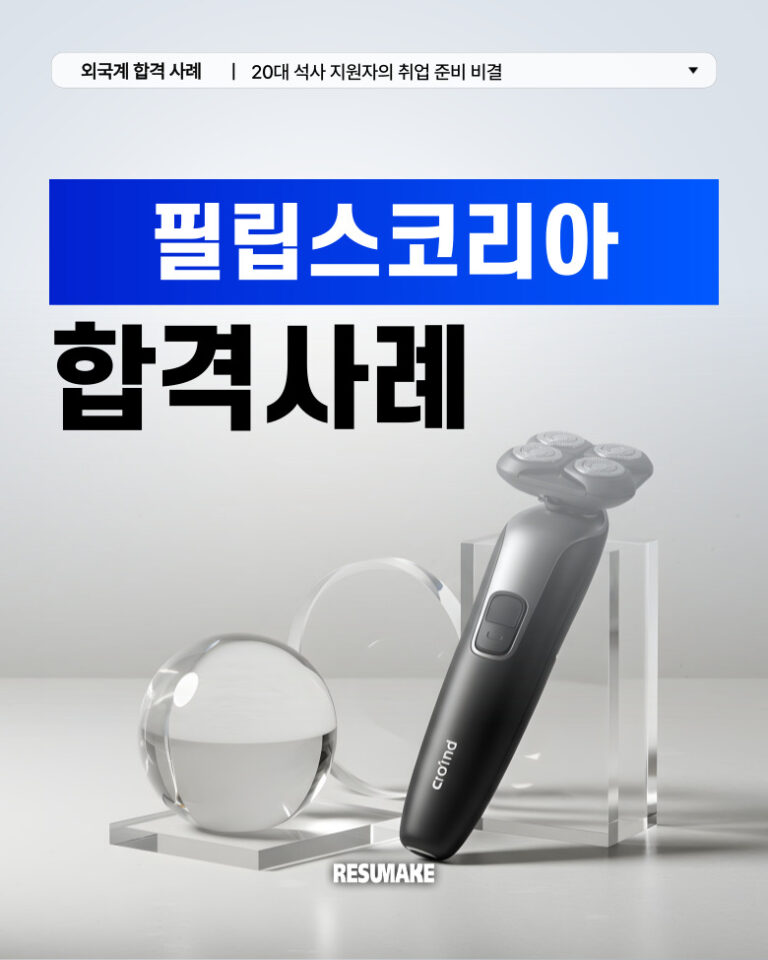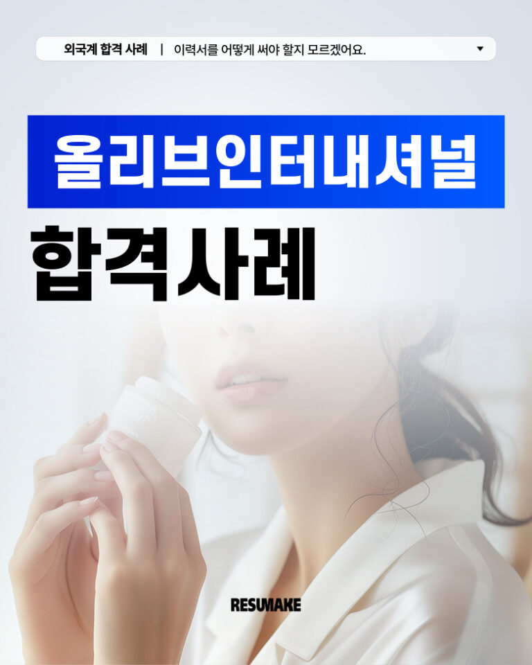 수많은 합격후기가 증명합니다(신입 / 경력 / 임원)레쥬메이크는 어떤 스펙이어도, 어떤 상황이어도 원하는 기업으로의 취업을 성공시킨 수천건의 합격 케이스가 있습니다. 지방대 출신 학점 2.0대로 외국계 기업 신입으로 최종 합격한 지원자, 2년 경력 단절 지원자 재취업 성공 사례, 연봉 최대 40% 인상하고 이직에 성공한 경력직 지원자, 국내 기업 출신 50대 후반 지원자가 외국계 임원급으로 성공한 후기까지.. 이제 당신이 그 후기의 주인공이 될 차례입니다. 합격사례 검색 총 915개 결과 ‹ 1 2 3 … 39 › 오로지 결과로만 말합니다(인턴 / 신입 / 경력 / 임원)레쥬메이크를 통해 원하는 기업으로 입사하세요. 후기가 가짜일 경우 전액 환불해 드립니다. 취준생이 전하는 레쥬메이크 컨설팅 후기대기업에 취업한 친구가 부럽기만 한가요? 언제까지 준비만 하고 있을 건가요? 다음 합격의 주인공이 될 기회를 놓치지 마세요. 꿈의 직장으로입사할 준비가 되셨나요?출근하러 가기