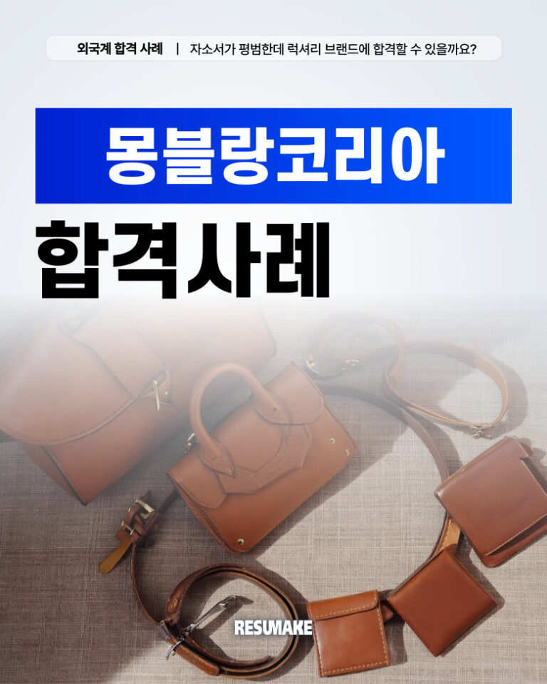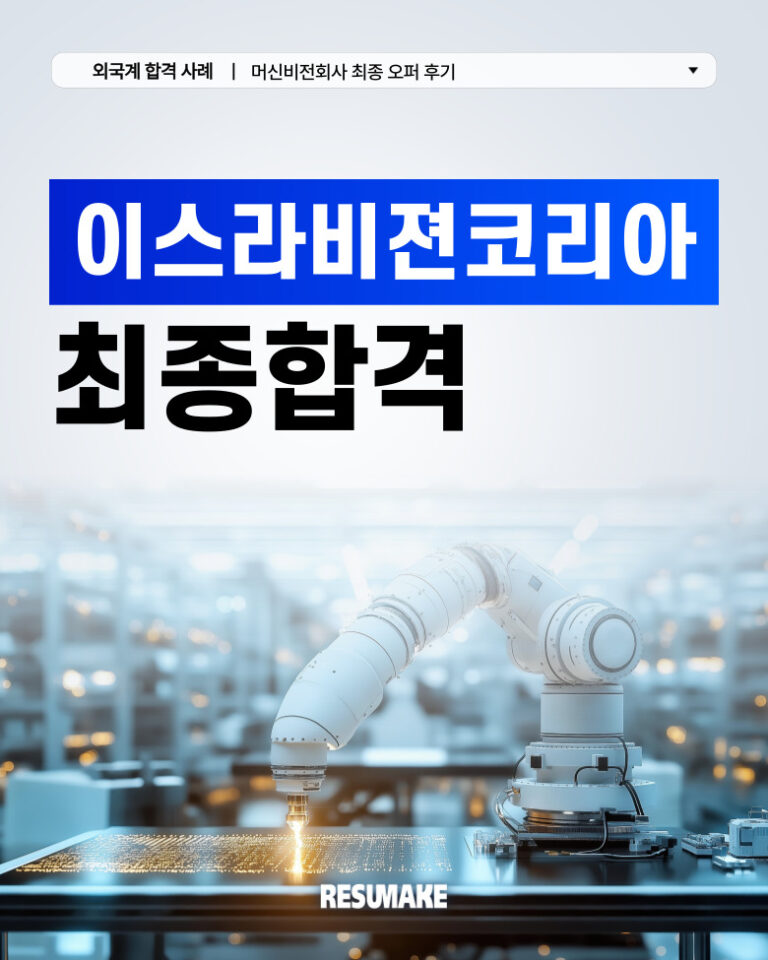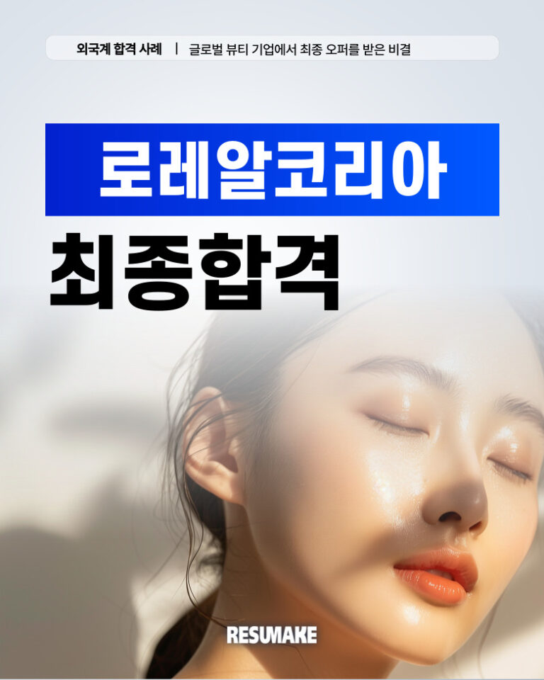 수많은 합격후기가 증명합니다(신입 / 경력 / 임원)레쥬메이크는 어떤 스펙이어도, 어떤 상황이어도 원하는 기업으로의 취업을 성공시킨 수천건의 합격 케이스가 있습니다. 지방대 출신 학점 2.0대로 외국계 기업 신입으로 최종 합격한 지원자, 2년 경력 단절 지원자 재취업 성공 사례, 연봉 최대 40% 인상하고 이직에 성공한 경력직 지원자, 국내 기업 출신 50대 후반 지원자가 외국계 임원급으로 성공한 후기까지.. 이제 당신이 그 후기의 주인공이 될 차례입니다. 합격사례 검색 총 915개 결과 ‹ 1 2 3 4 … 39 › 오로지 결과로만 말합니다(인턴 / 신입 / 경력 / 임원)레쥬메이크를 통해 원하는 기업으로 입사하세요. 후기가 가짜일 경우 전액 환불해 드립니다. 취준생이 전하는 레쥬메이크 컨설팅 후기대기업에 취업한 친구가 부럽기만 한가요? 언제까지 준비만 하고 있을 건가요? 다음 합격의 주인공이 될 기회를 놓치지 마세요. 꿈의 직장으로입사할 준비가 되셨나요?출근하러 가기