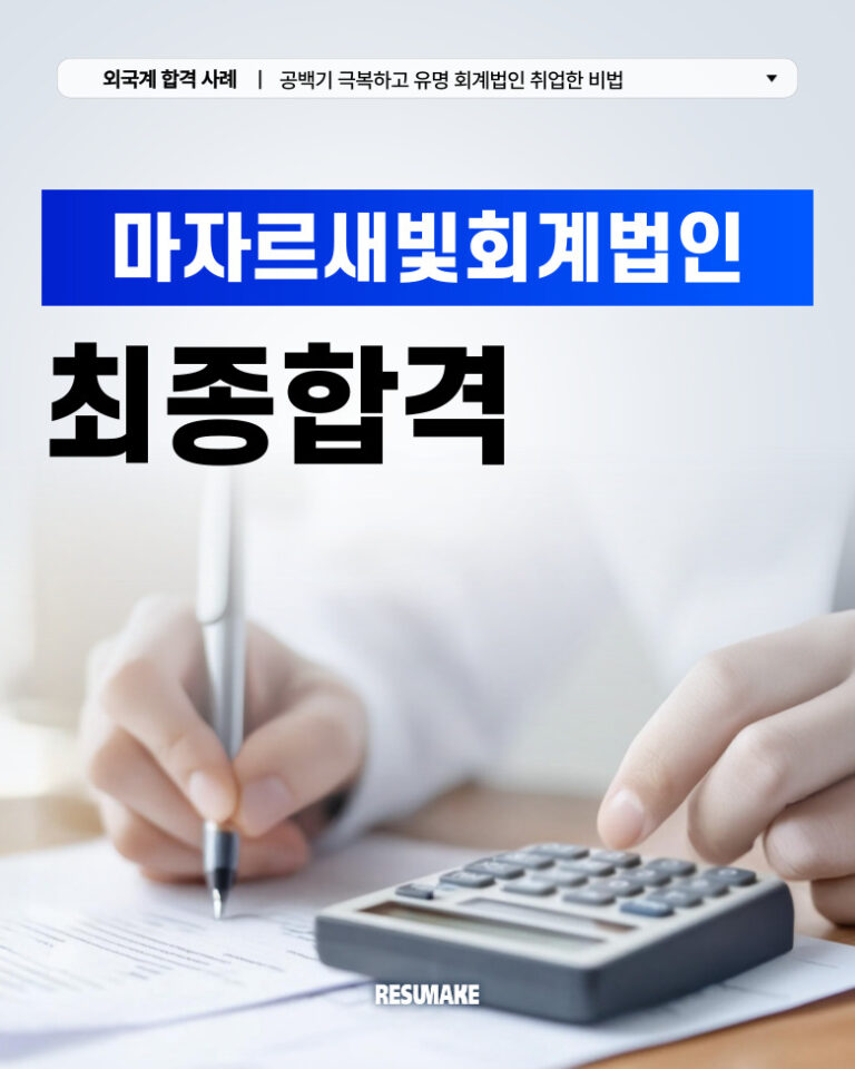 수많은 합격후기가 증명합니다(신입 / 경력 / 임원)레쥬메이크는 어떤 스펙이어도, 어떤 상황이어도 원하는 기업으로의 취업을 성공시킨 수천건의 합격 케이스가 있습니다. 지방대 출신 학점 2.0대로 외국계 기업 신입으로 최종 합격한 지원자, 2년 경력 단절 지원자 재취업 성공 사례, 연봉 최대 40% 인상하고 이직에 성공한 경력직 지원자, 국내 기업 출신 50대 후반 지원자가 외국계 임원급으로 성공한 후기까지.. 이제 당신이 그 후기의 주인공이 될 차례입니다. 합격사례 검색 총 915개 결과 ‹ 1 … 5 6 7 … 39 › 오로지 결과로만 말합니다(인턴 / 신입 / 경력 / 임원)레쥬메이크를 통해 원하는 기업으로 입사하세요. 후기가 가짜일 경우 전액 환불해 드립니다. 취준생이 전하는 레쥬메이크 컨설팅 후기대기업에 취업한 친구가 부럽기만 한가요? 언제까지 준비만 하고 있을 건가요? 다음 합격의 주인공이 될 기회를 놓치지 마세요. 꿈의 직장으로입사할 준비가 되셨나요?출근하러 가기